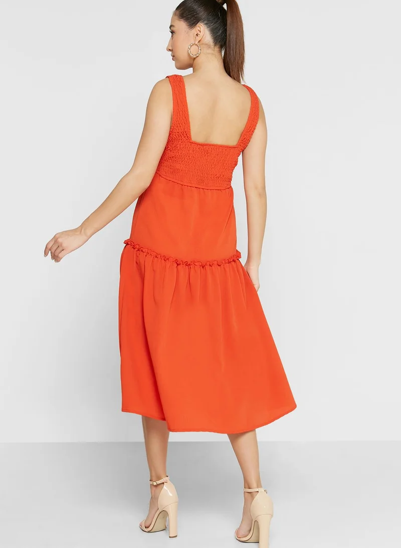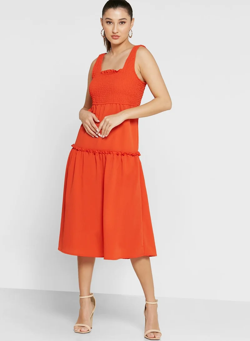 Ginger Scrunched Strap Smocked Tiered Dress