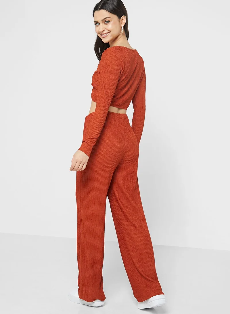 Solid Casual Pant Set