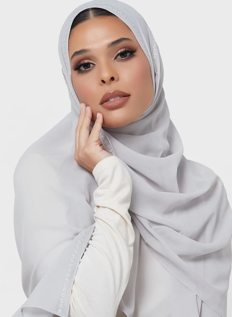 Poly Hijab With Floral Embroidery