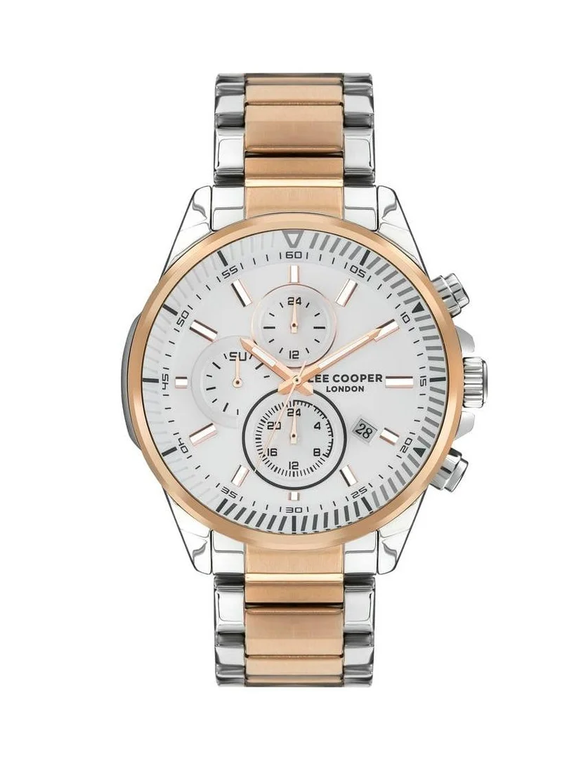 Lee Cooper Men's Quartz Movement Watch, Multi Function Display and Metal Strap - LC07486.550, Silver/Rose Gold