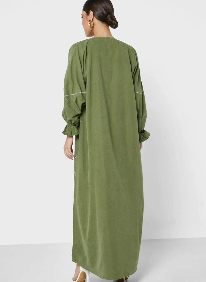 Moistreet Balloon Sleeve Stripe Detail Abaya