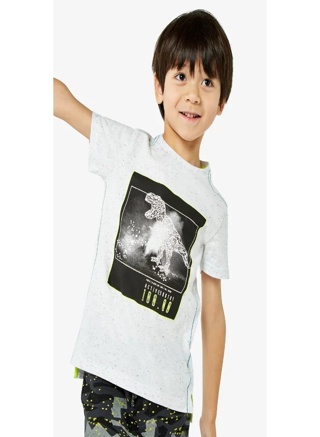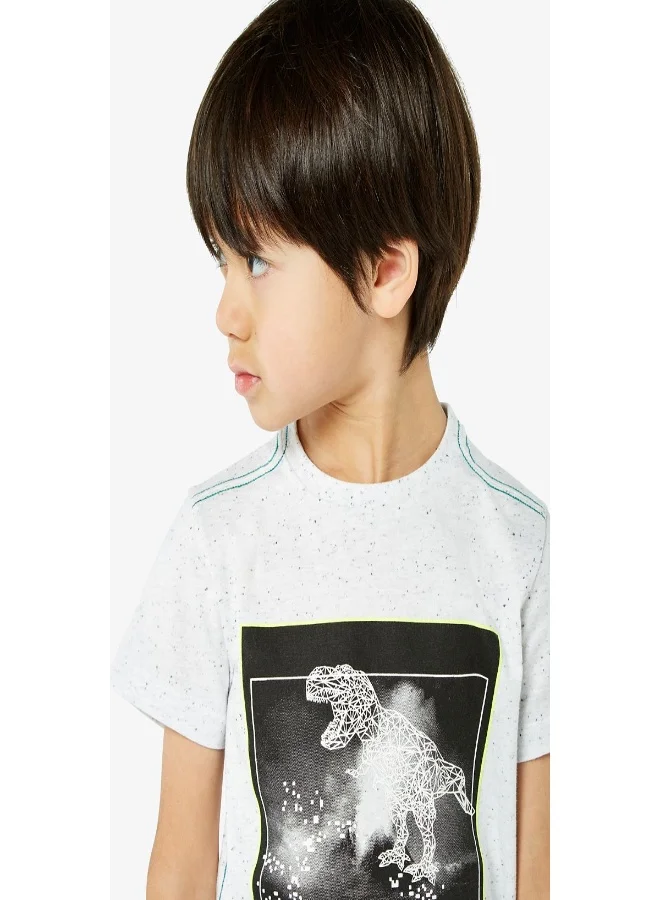 This will be a top that's dug out from the wardrobe often by dinosaur lovers. Crafted from naturally soft, breathable cotton to keep every expedition comfy, this crew-neck tee has a cool photographic print and pops of yellow neon.