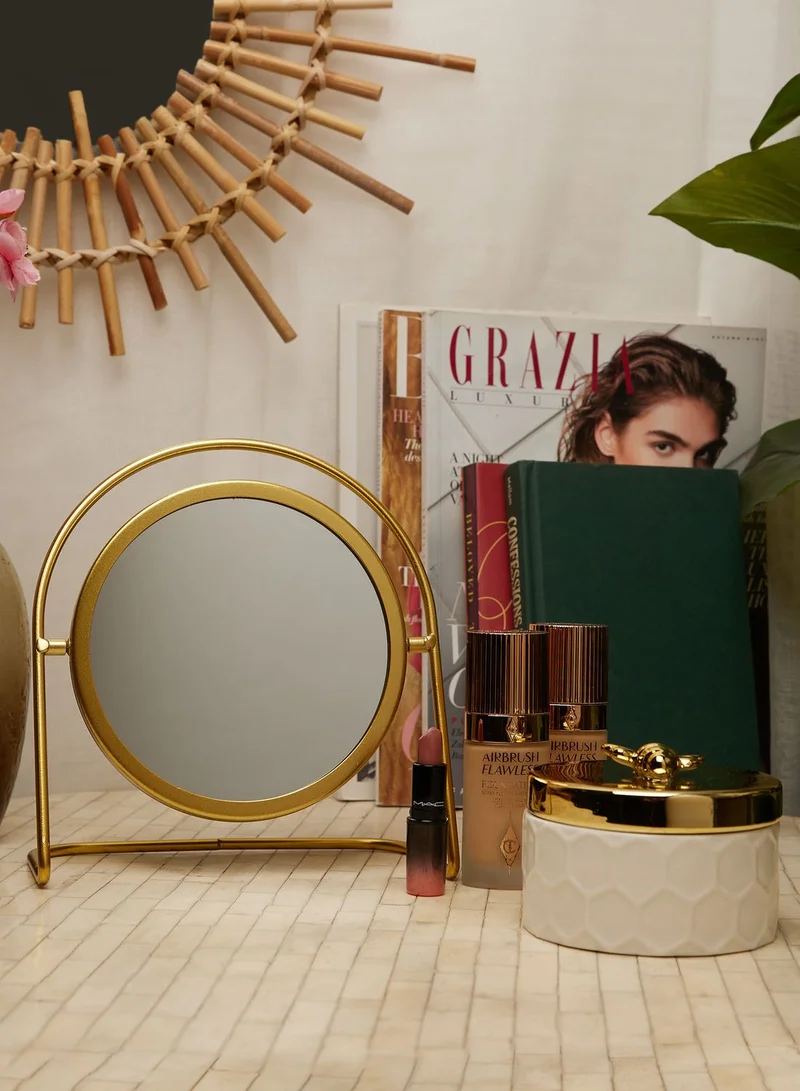 The mirror's beveled edges add a further luxurious touch to this contemporary piece.
