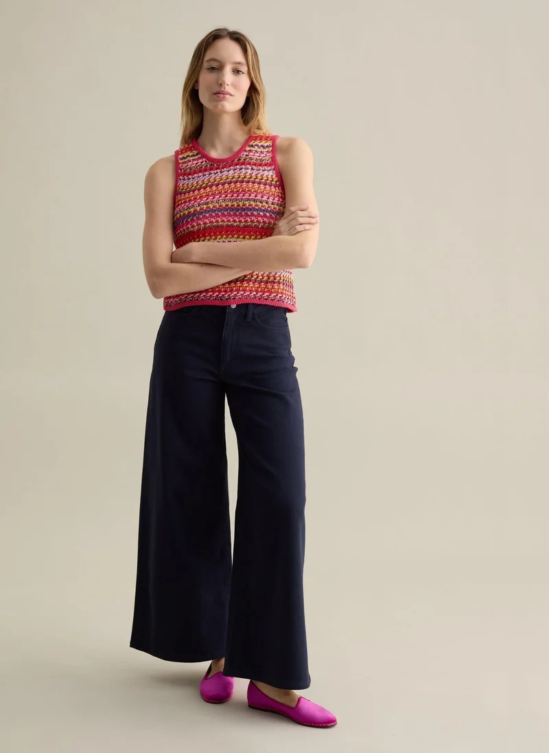 Piombo Tank Top In 100% Cotton Crochet With Multicoloured Motif. Round Neck. Wide Shoulder Straps.