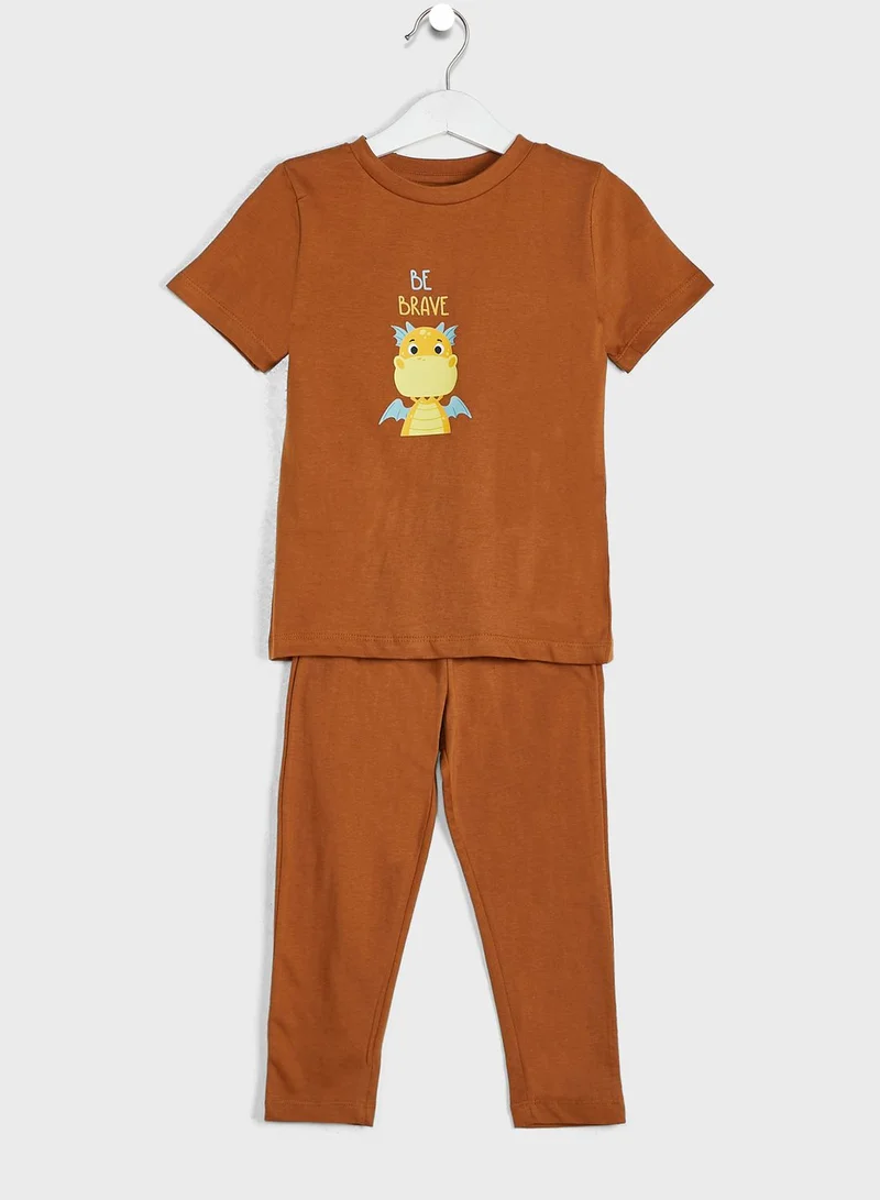 This casual t-shirt and pants set brings a bold yet minimal look to little kid's wardrobe.