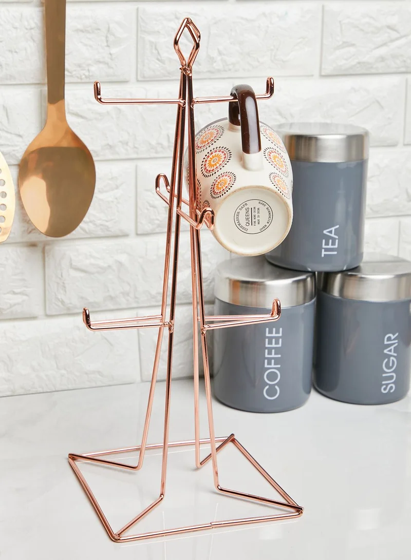 • Each of its six arms curves upwards at the tip that ensures that mugs are secure while being displayed