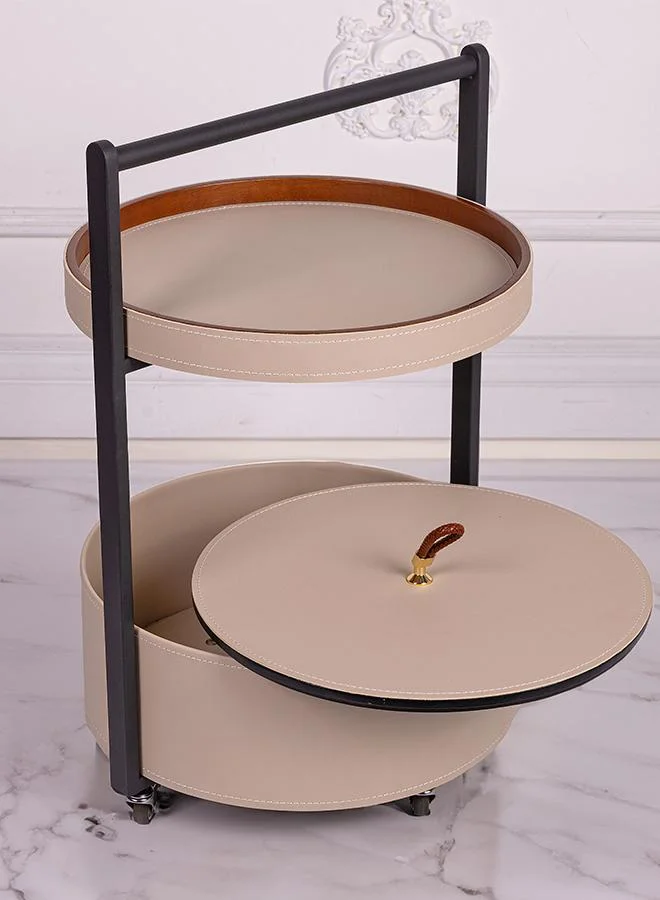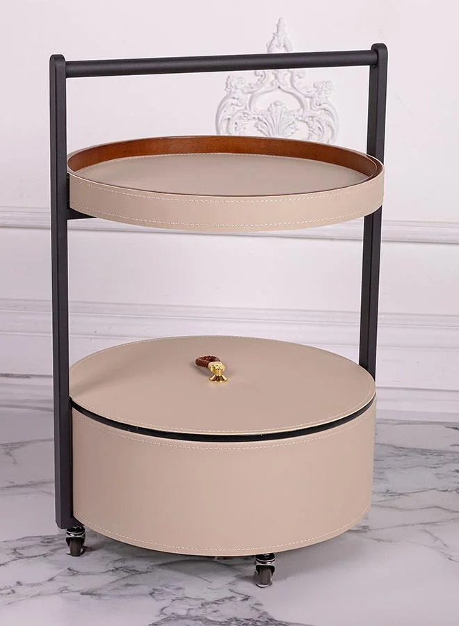 Monda leather Accent side table/ BAR TABLE WITH STORAGE ON WHEELS - BEIGE BY QUESERA