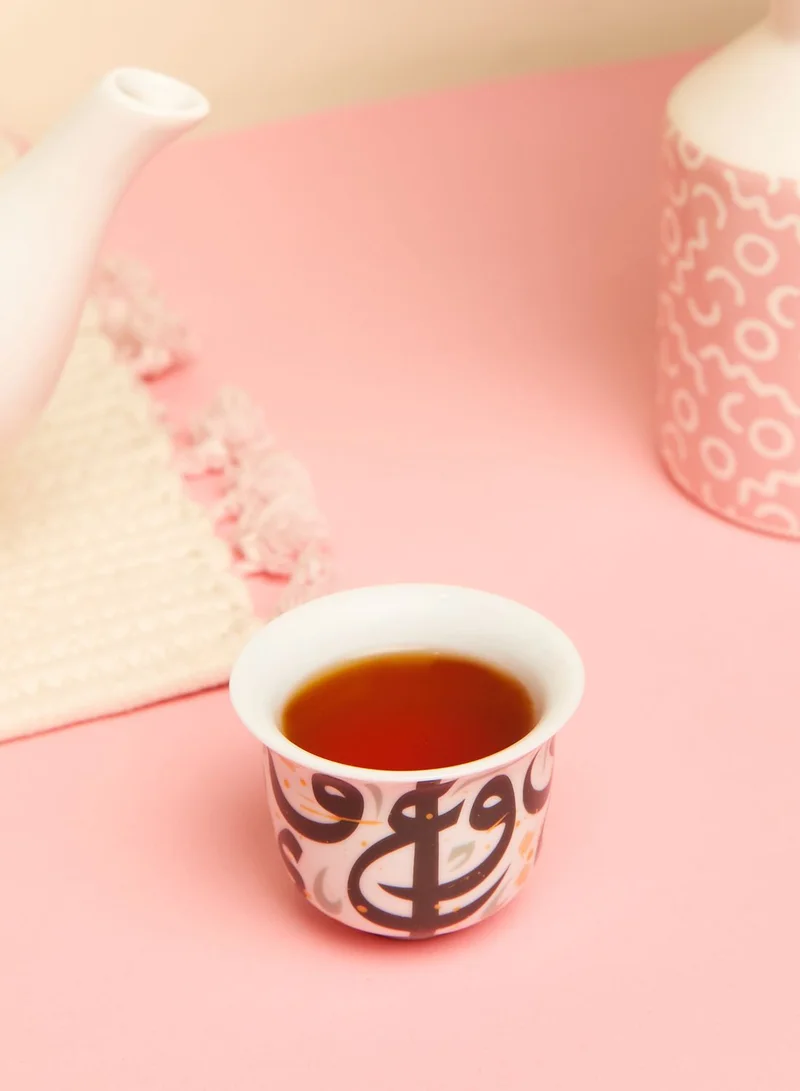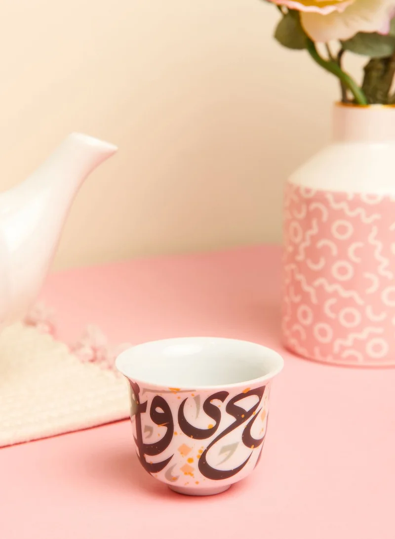 Enjoy the perfect Arabic coffee with this porcelain cup. Decorated with letters and accents which spell the phrase “Sahtain W' A'afieh”, or “Bon Appetit”, it is finished with playful splashes of color.