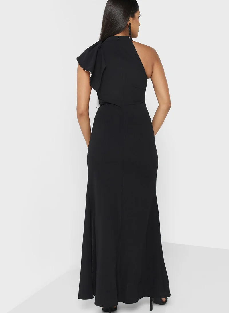 One Shoulder Waterfall Trim Dress