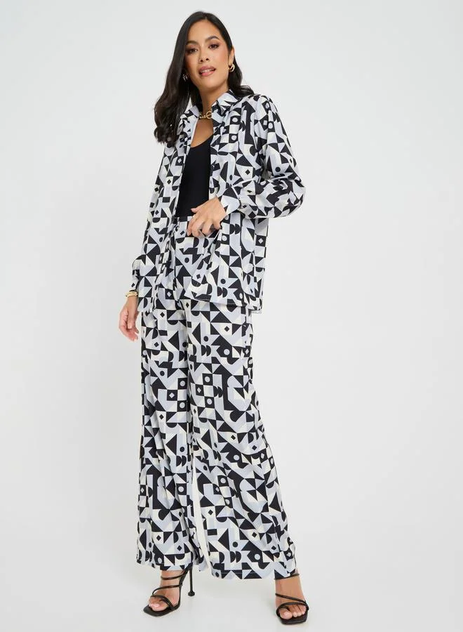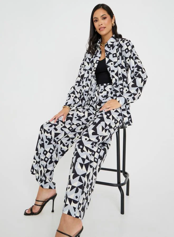 Styli Abstract Print Longline Shirt & Trouser Co-Ord Set