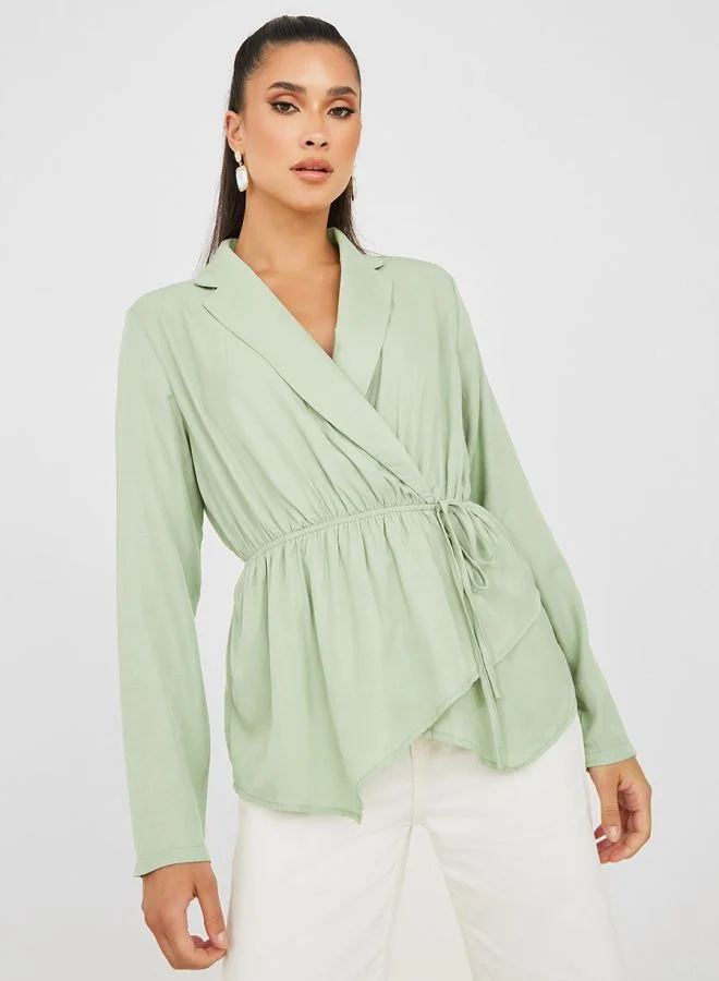 Asymmetric Hem Notch Lapel Wrap Front Top