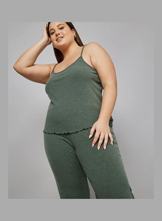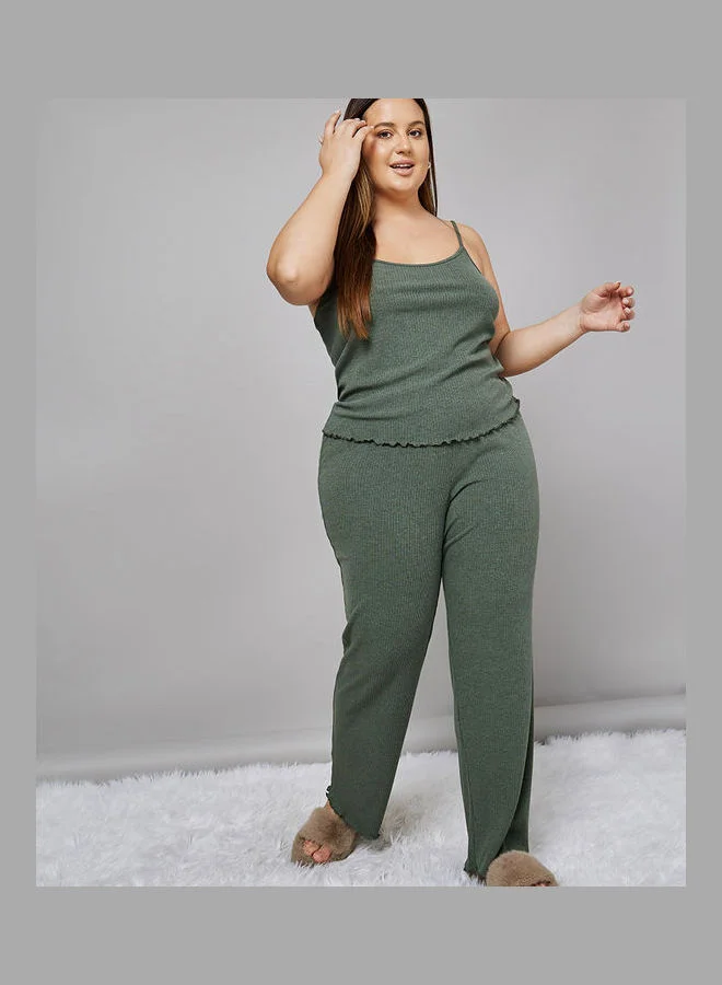 Styli Brushed Rib Strappy Cami and Trouser Pyjama Set