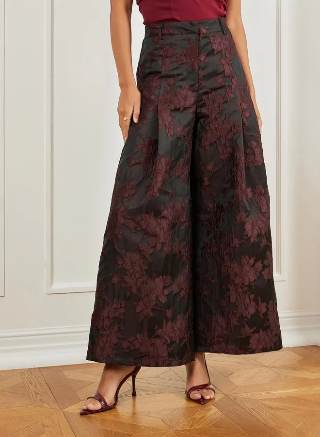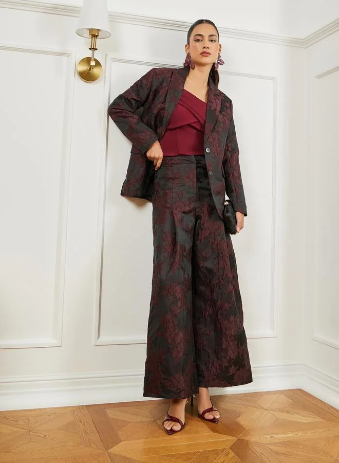 Styli Burgundy Jacquard Wide Leg Trousers