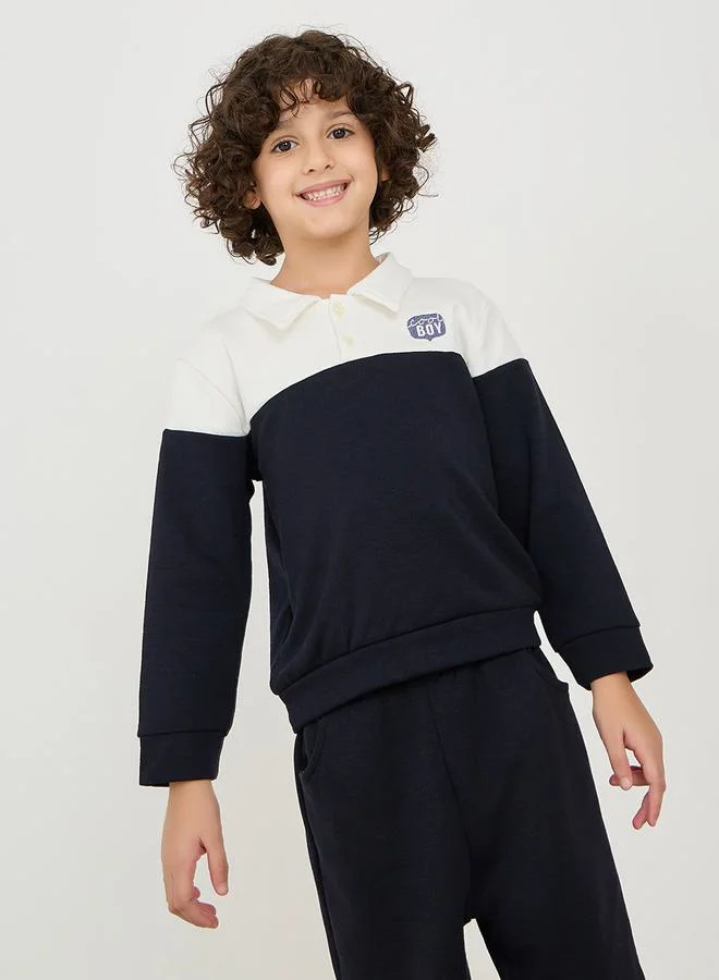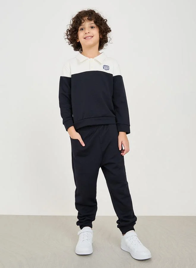 Styli Colorblock Embroidered Patch Polo T-Shirt & Pants Set