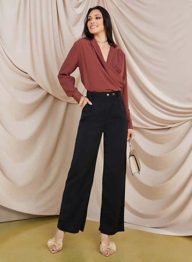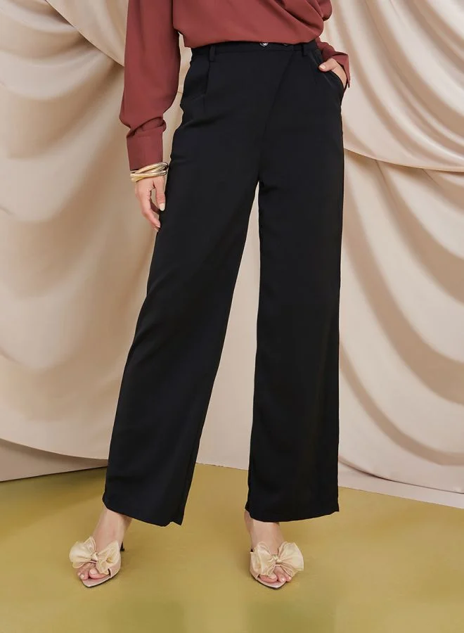 Styli Detailed Waist Wide Leg Trousers