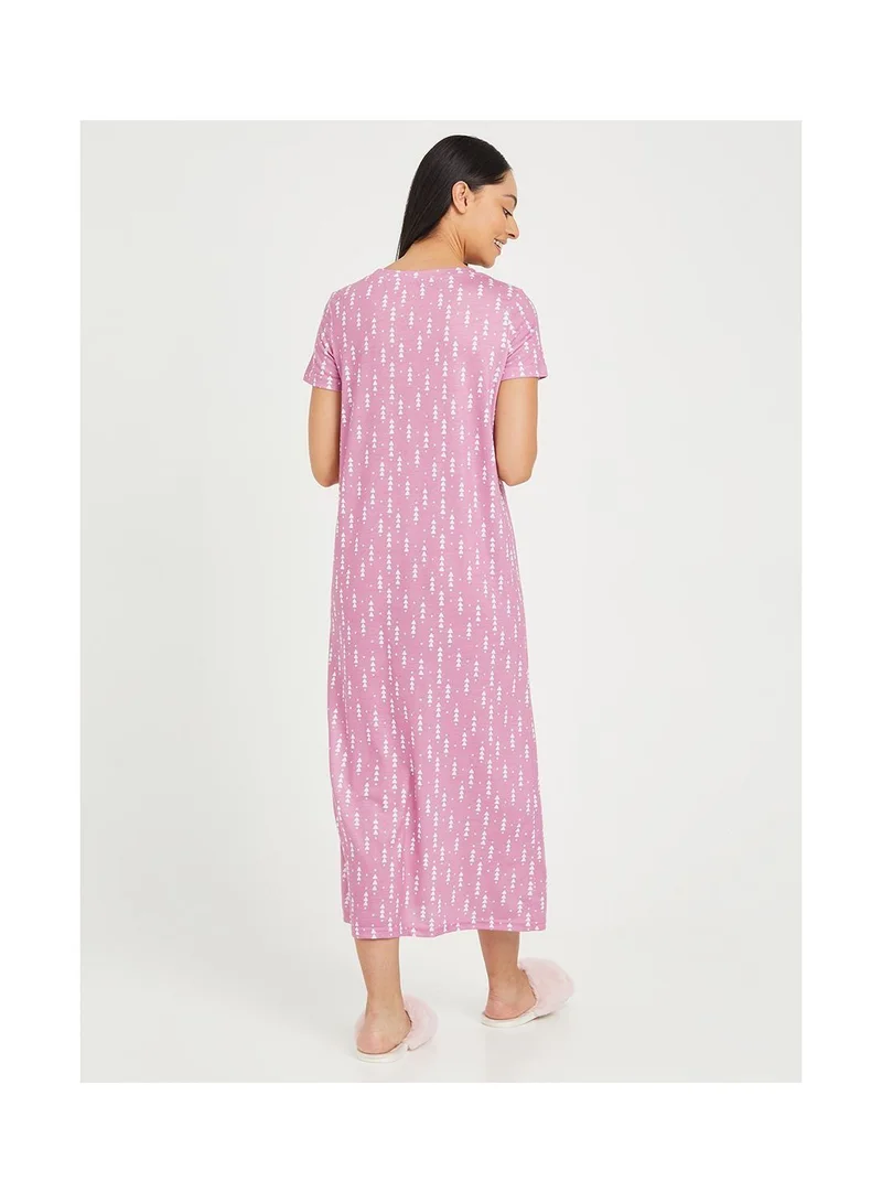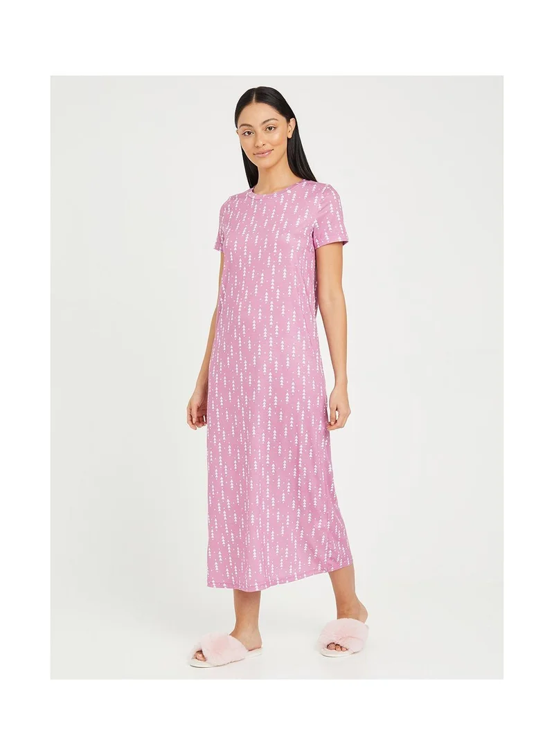 Styli Ditsy AOP Maxi Sleep T-shirt Dress