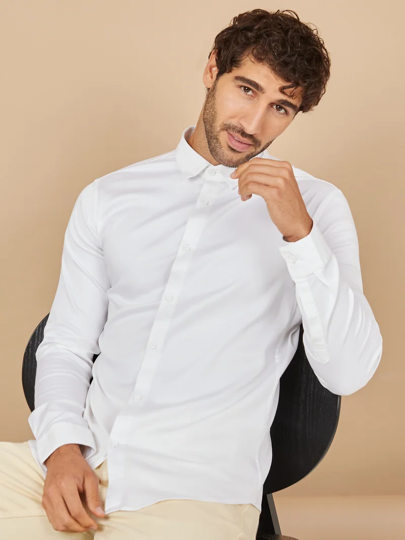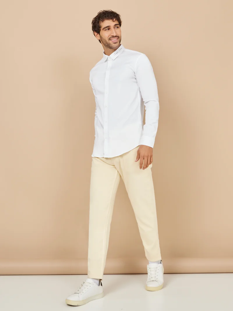 Styli Embroidered Collar Detail Slim Fit Shirt