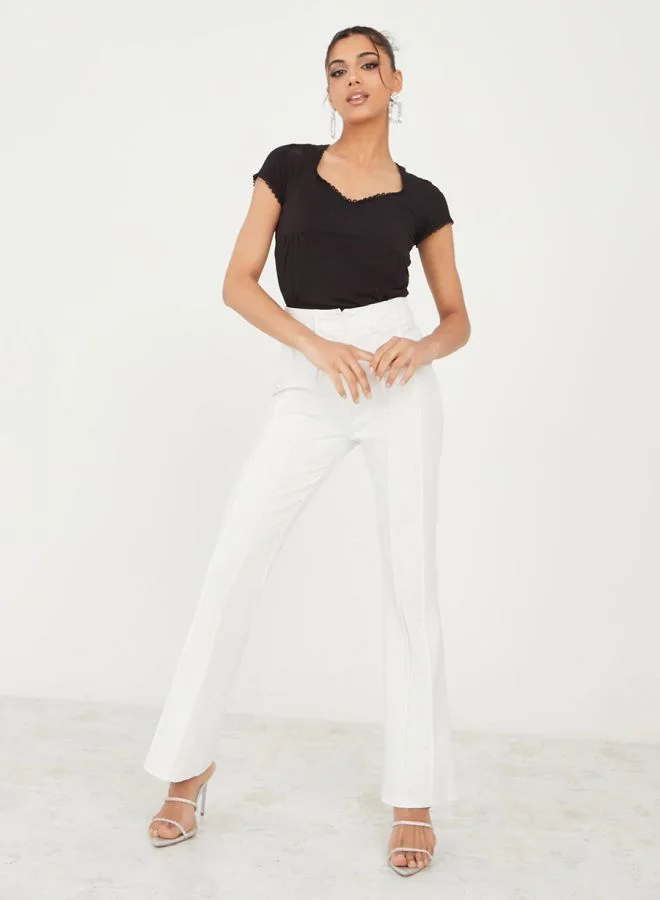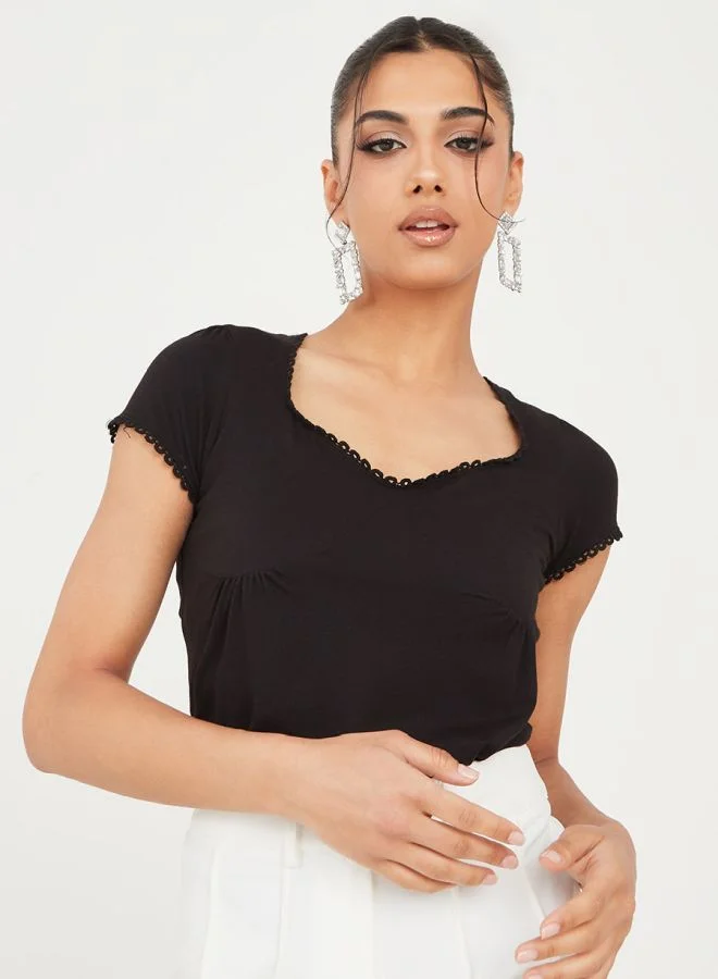 Styli Fitted Pointelle Trim Princess T-Shirt