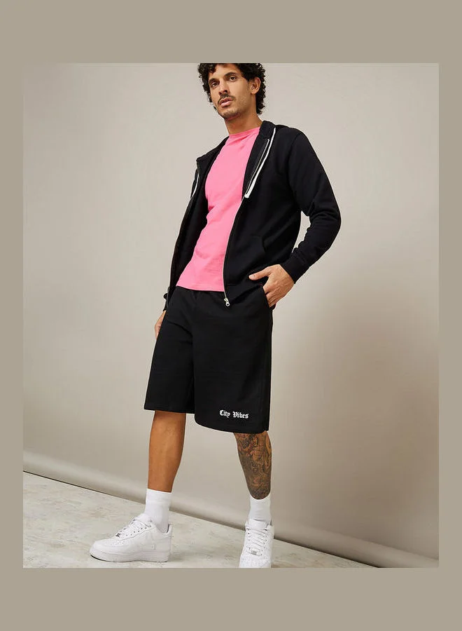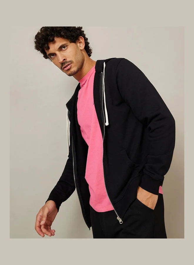 Styli Front Zip Hoodie with Contrast Drawstring Detail