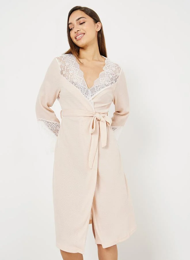 Styli Lace Trim Detail Waffle Texture Robe