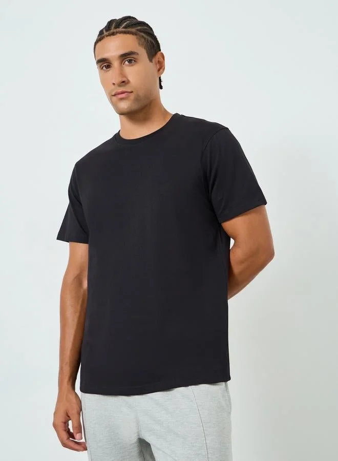 Styli Men Black Crew Neck Regular Fit T-Shirt