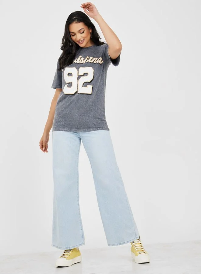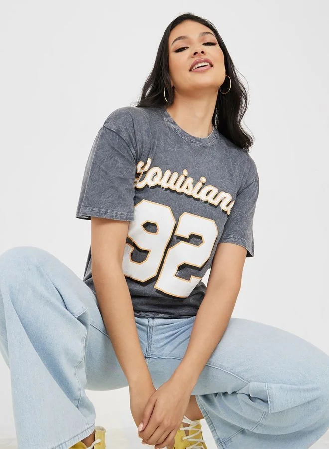 Styli Oversized 92 Graphic Acid Washed Longline T-Shirt