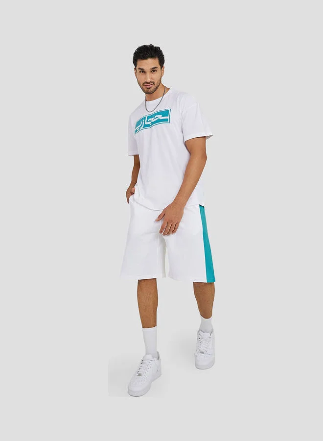 Styli Oversized Terry Shorts With Contrast Panel