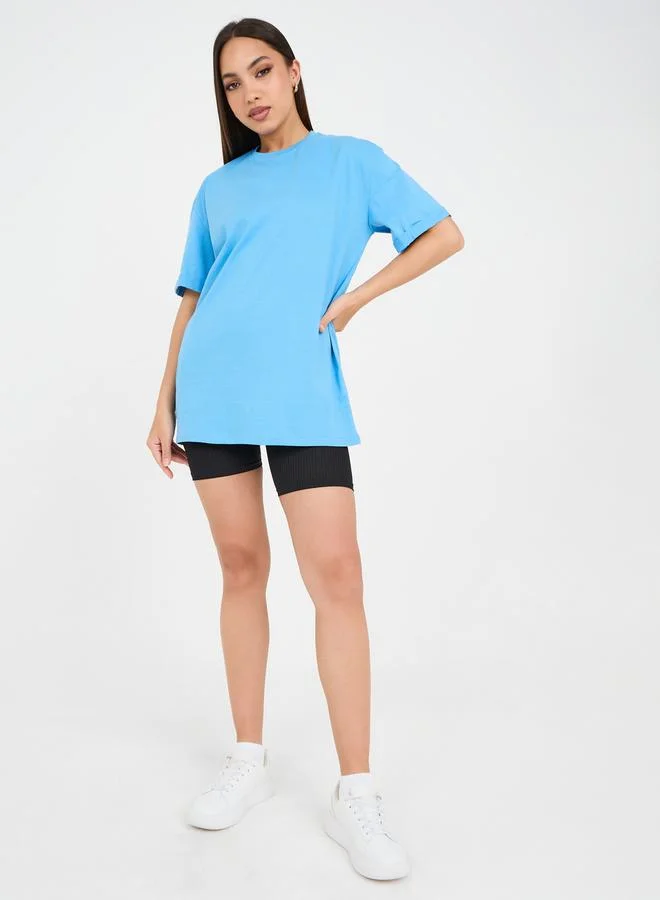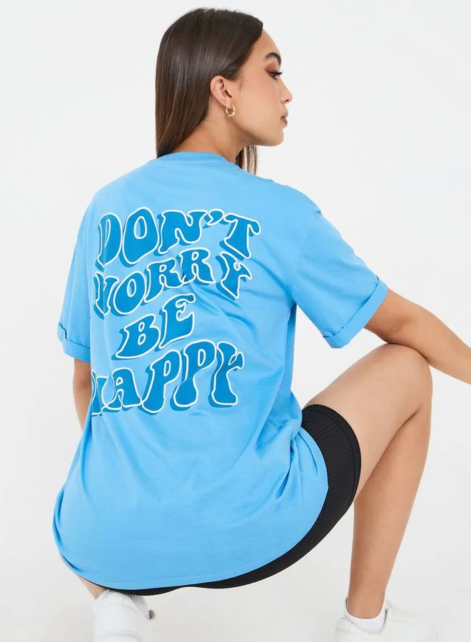 Styli Oversized Turn Up Sleeve Back Slogan Print Longline T-Shirt