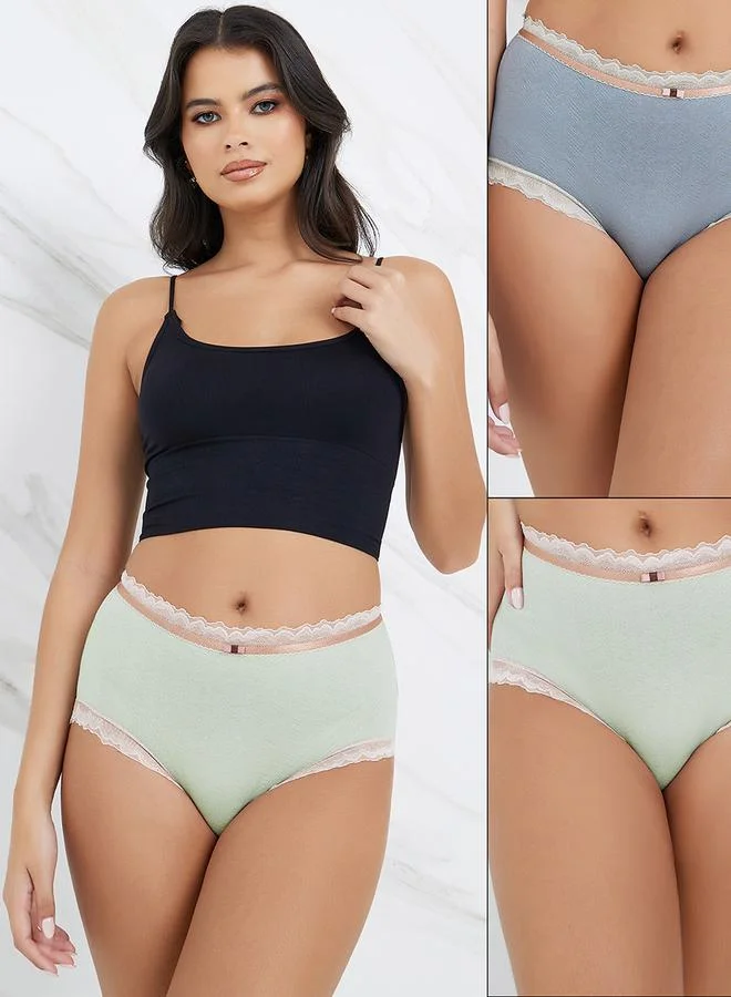 Styli Pack of 2 - Cotton Contrast Lace Trim Full Brief