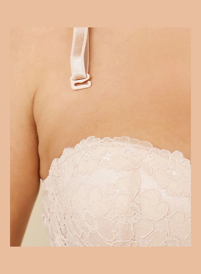 Styli Padded Wired All Over Floral Lace Balconette Bra