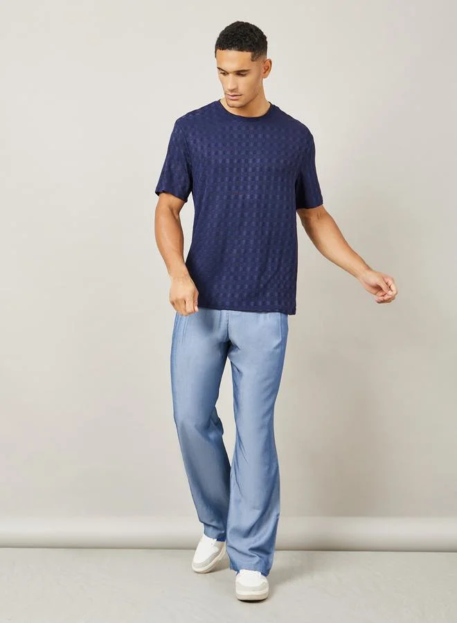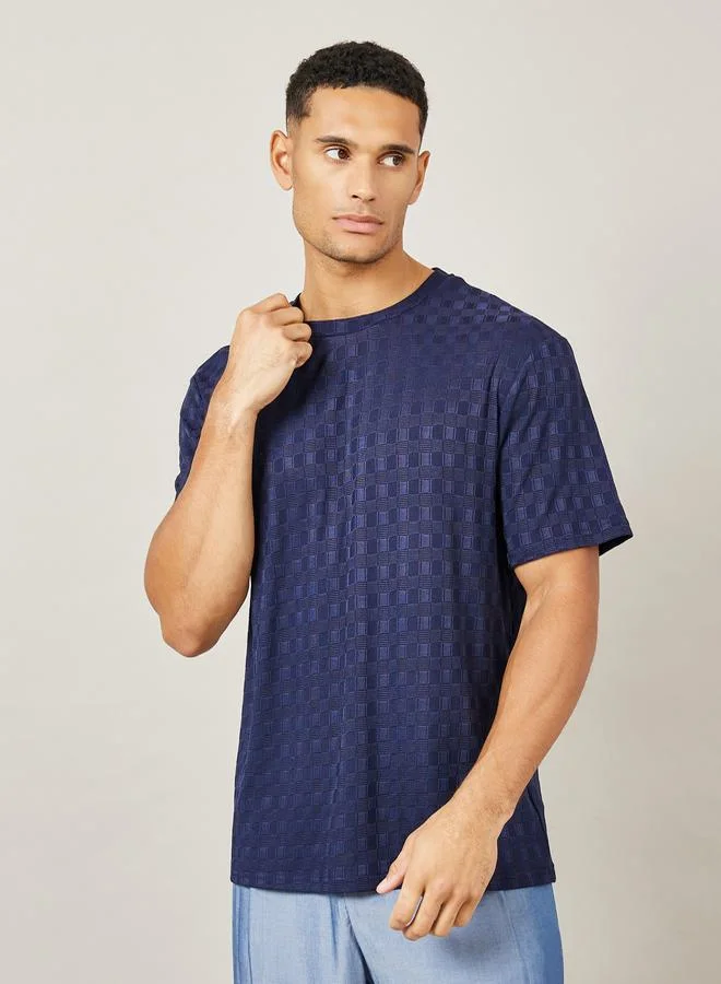 Styli Premium Check Pattern Textured Knit Relaxed Fit T-Shirt