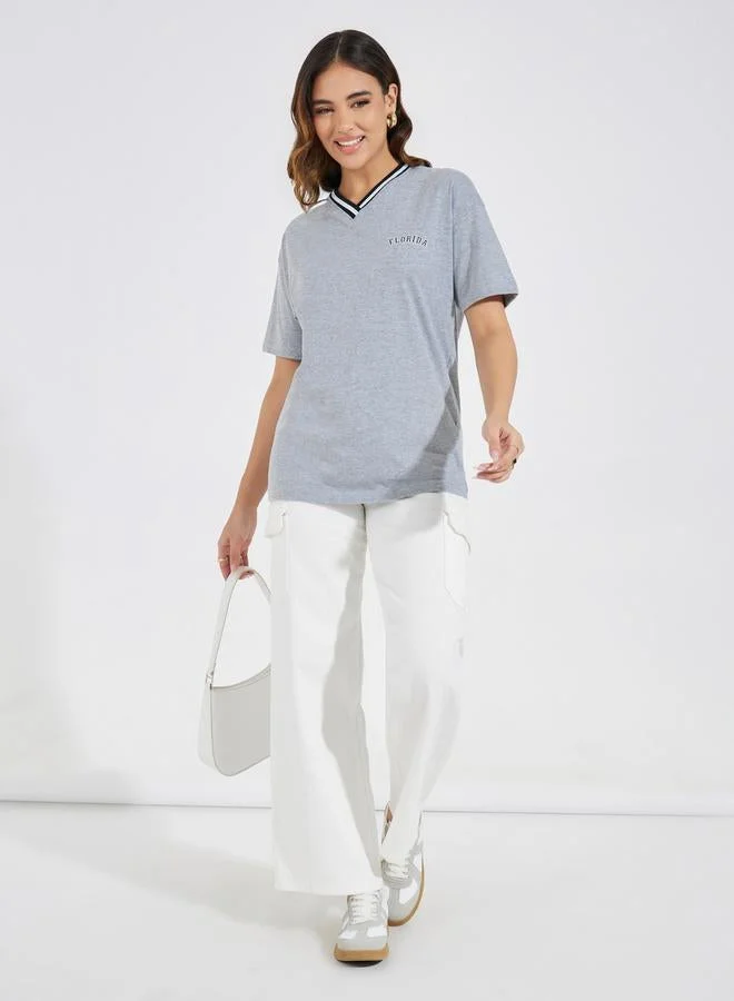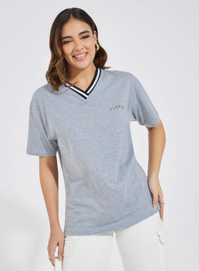Styli Regular Fit Florida Print V Neck T-Shirt