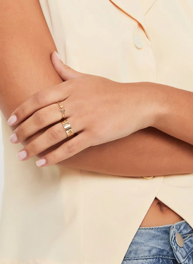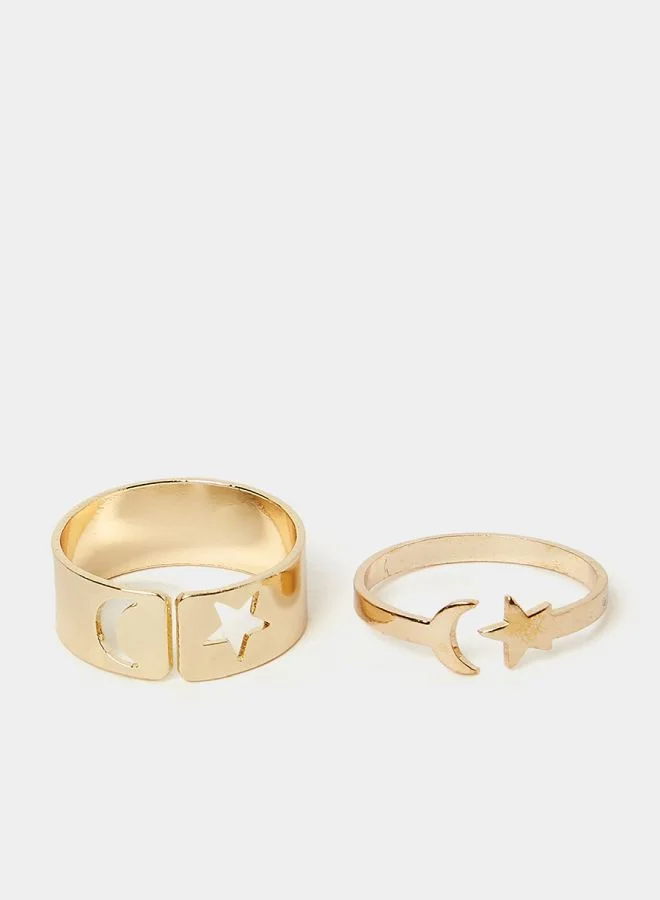 Set of 2 - Star & Moon Detail Cuff Rings