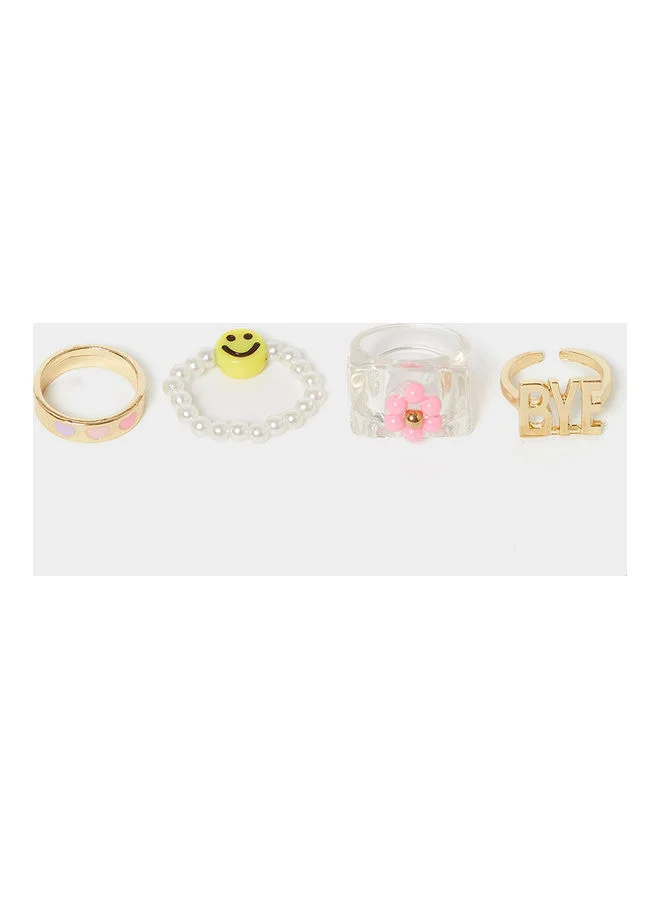 Set of 4 - Smiley Detail Assorted Rings