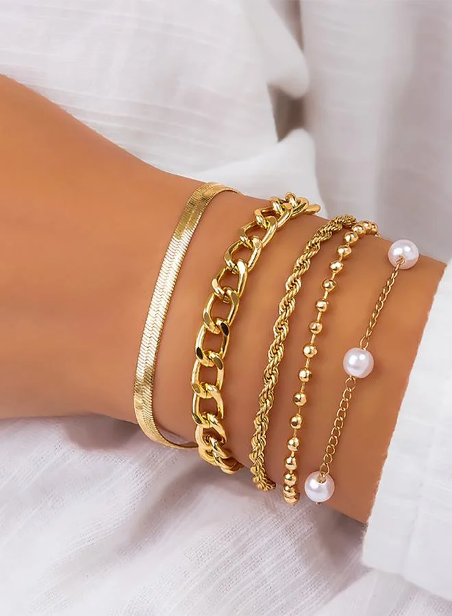 Set of 5 - Faux Pearl Detail Bracelet