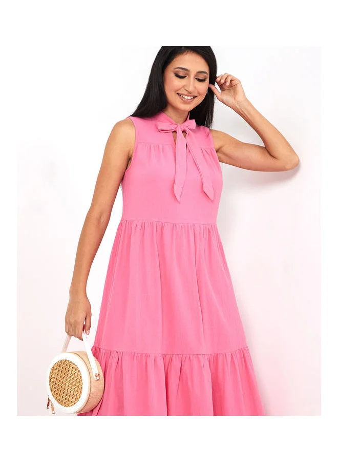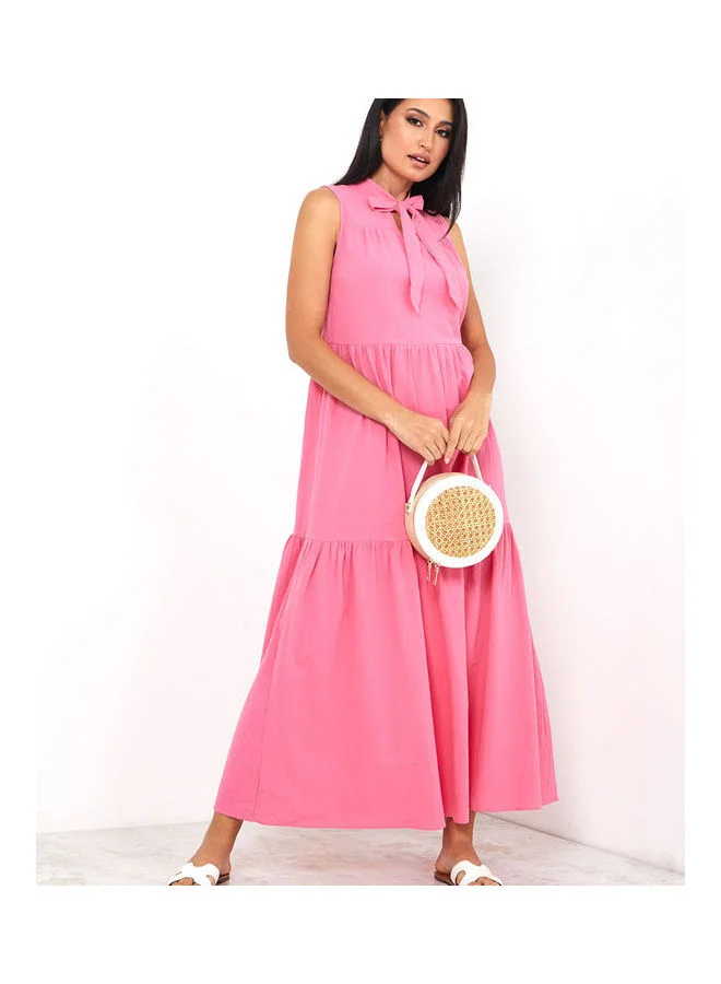 Styli Sleeveless Tie-Up Neck Tiered Maxi Dress