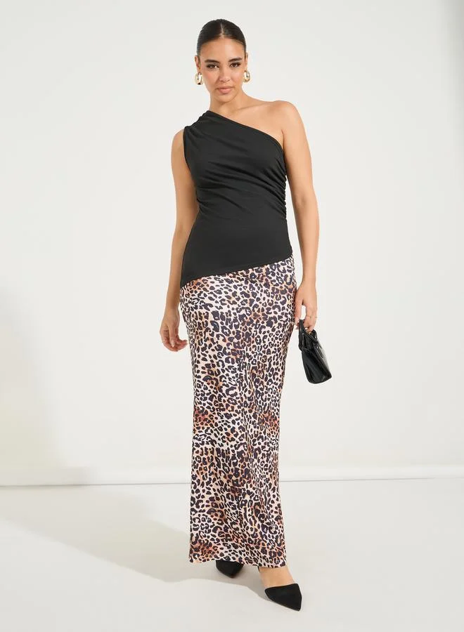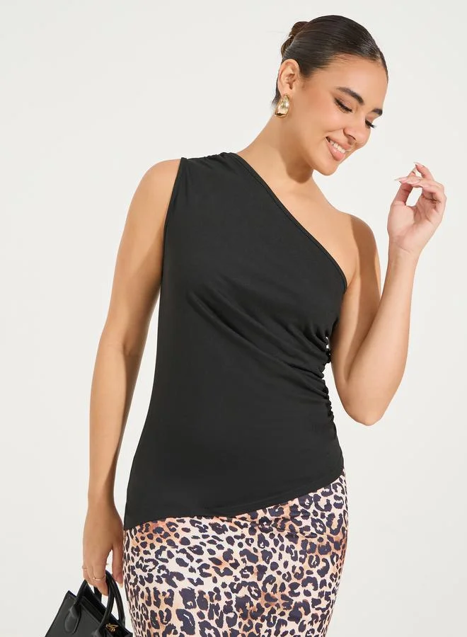 Styli Solid One Shoulder Top with Gathered Detail