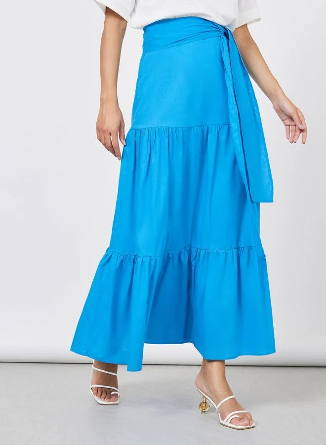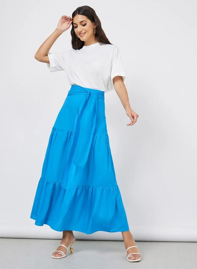 Styli Solid Tiered A-Line  Maxi Skirt