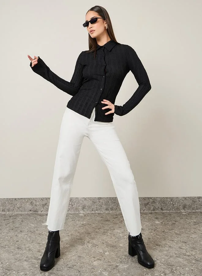 Styli Textured Collared Button Down Top