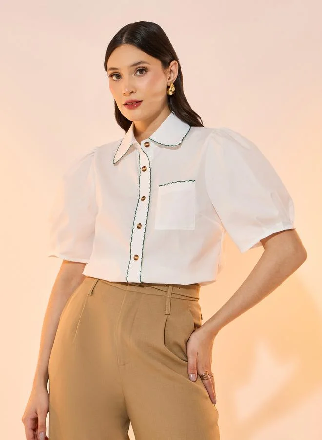Take Two Contrast Trim Collared Shirt with Button Placket
