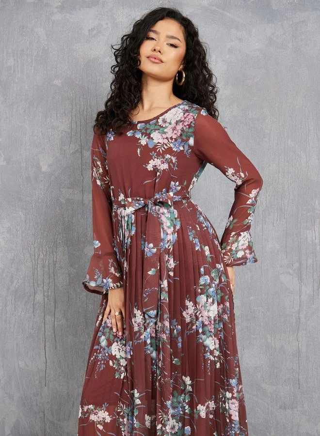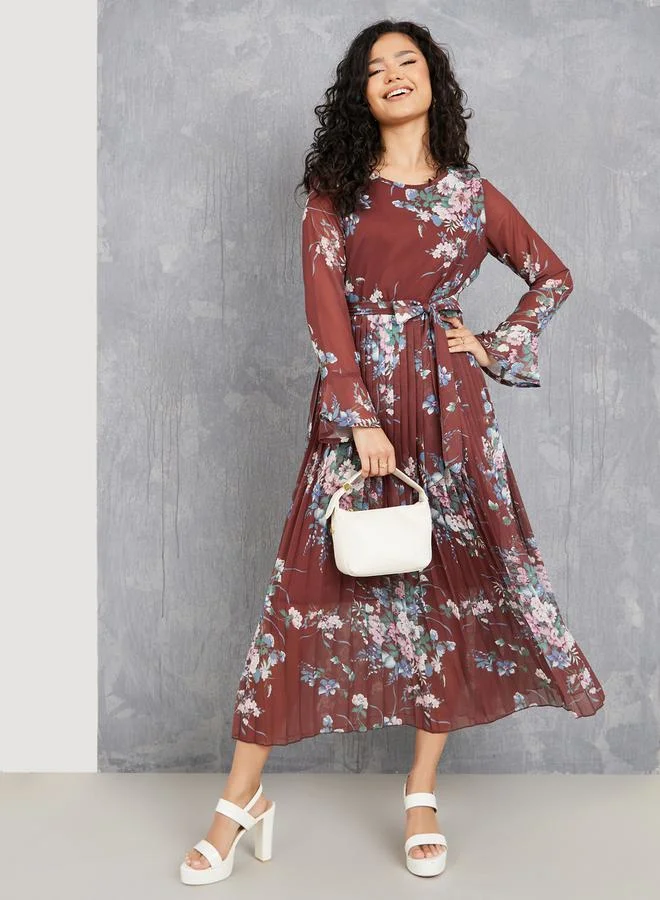 Take Two Floral Print Pleated Hem A-Line Maxi Dress