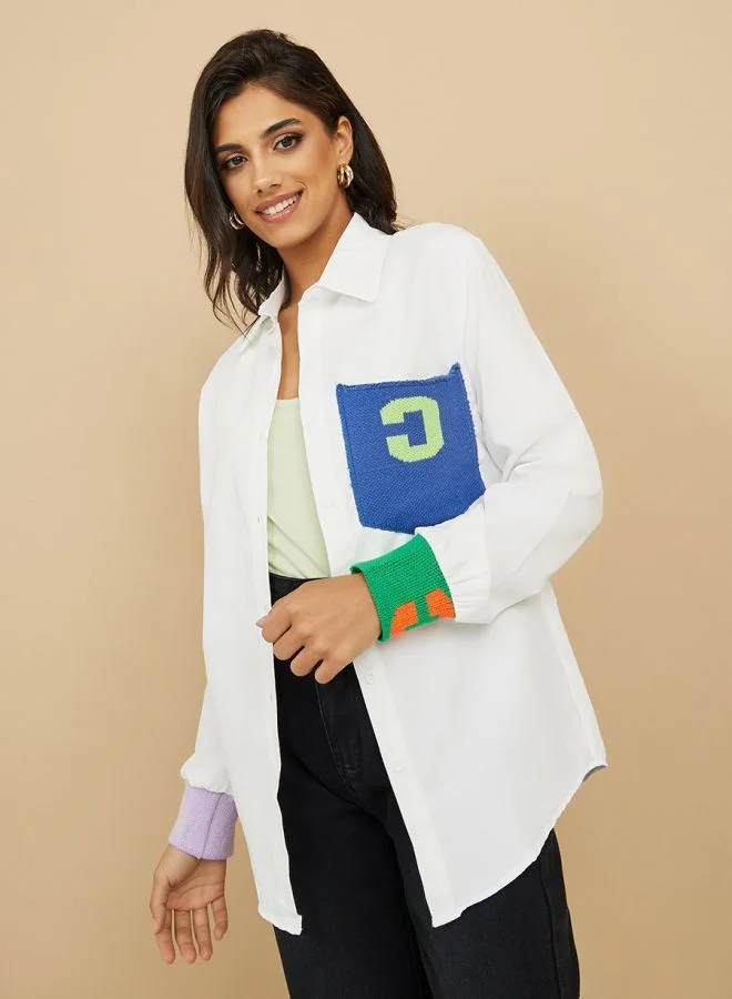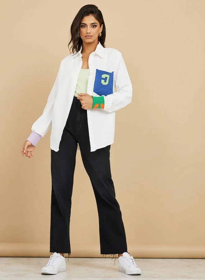 Patch Pocket Detail Contrast Cuff Longline Shirt