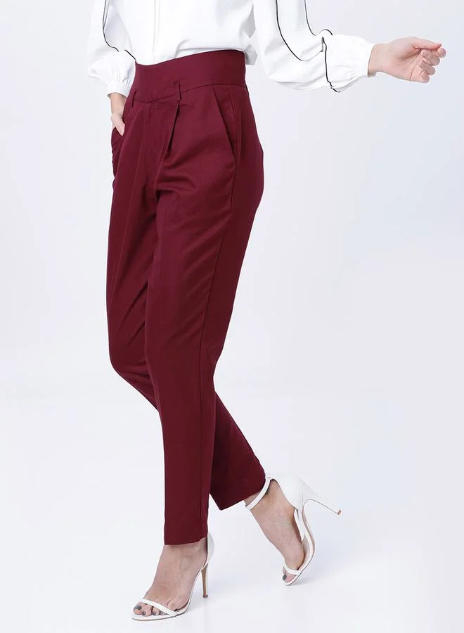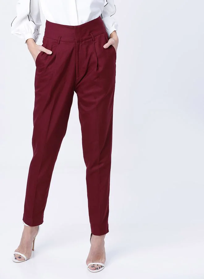 Tokyo Talkies Regular Fit Solid Peg Trousers by Styli
