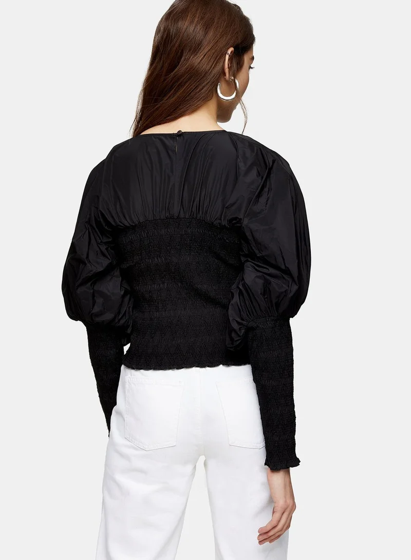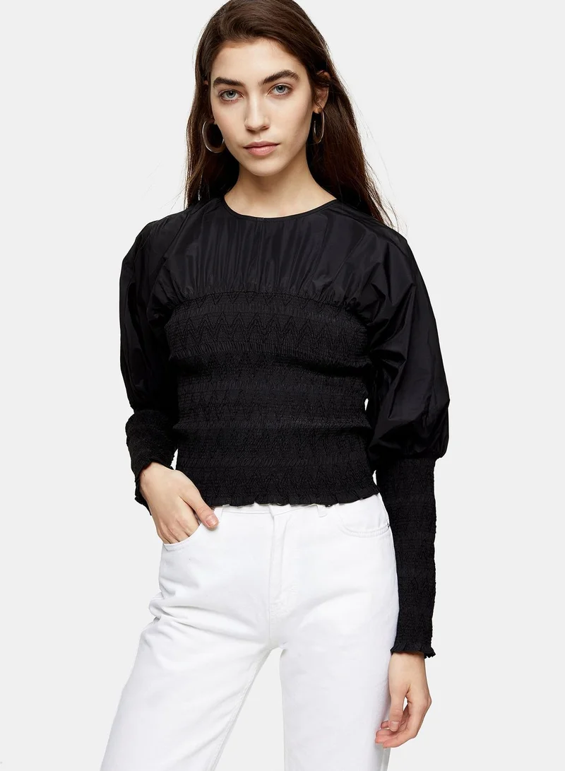 TOPSHOP Shirred Crew Neck Top