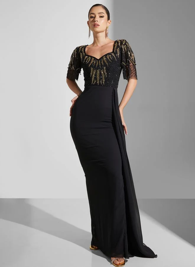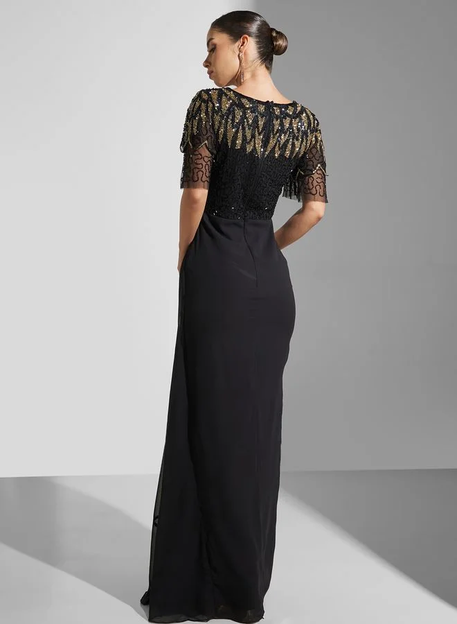 This lustrous dress offers a sleek and stylish look. Perfect for an evening out in the town.