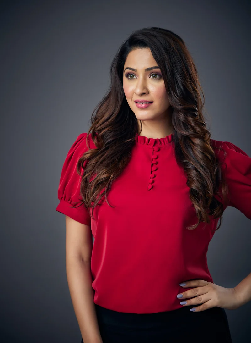 Red Frilled Neck Chiffon top