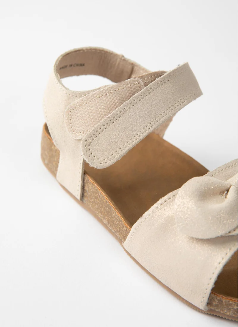 Suede Sandals with Bow for Girls, Beige