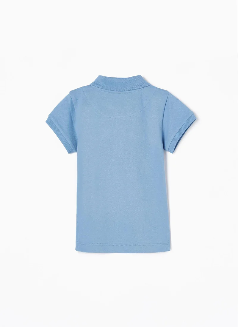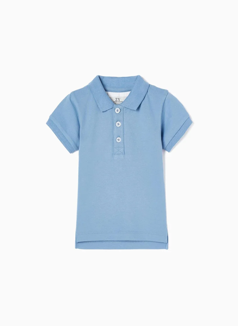 Blue Short Sleeve Polo Shirt For Baby Boys, In Cotton Piquã© With A Touch Of Elasticity For Greater Comfort & Freedom Of Movement. The Front Fastens With Half-Placket Buttons. Ribbed Collar & Sleeves For Better Fit.