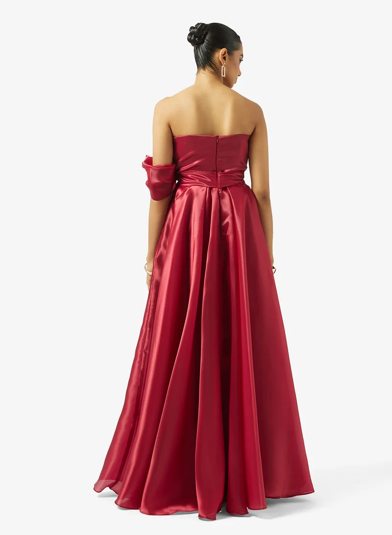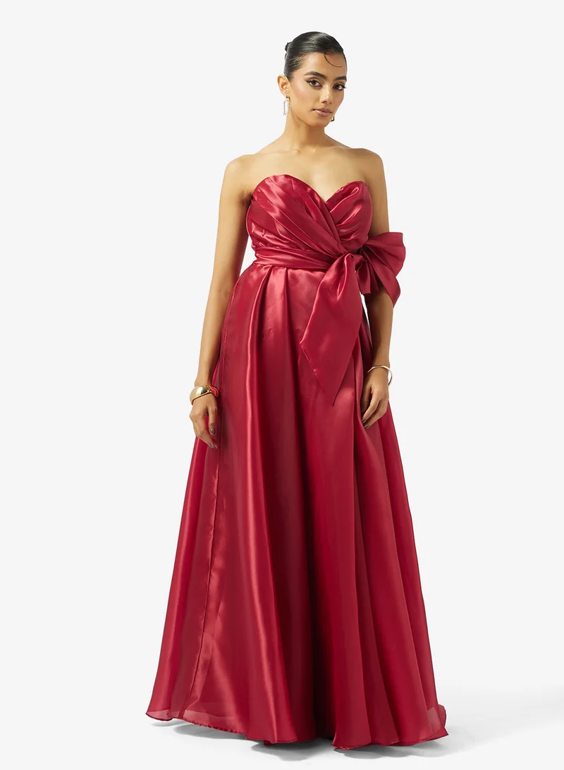 WRAP BUST STRAPLESS ORGANZA DRESS