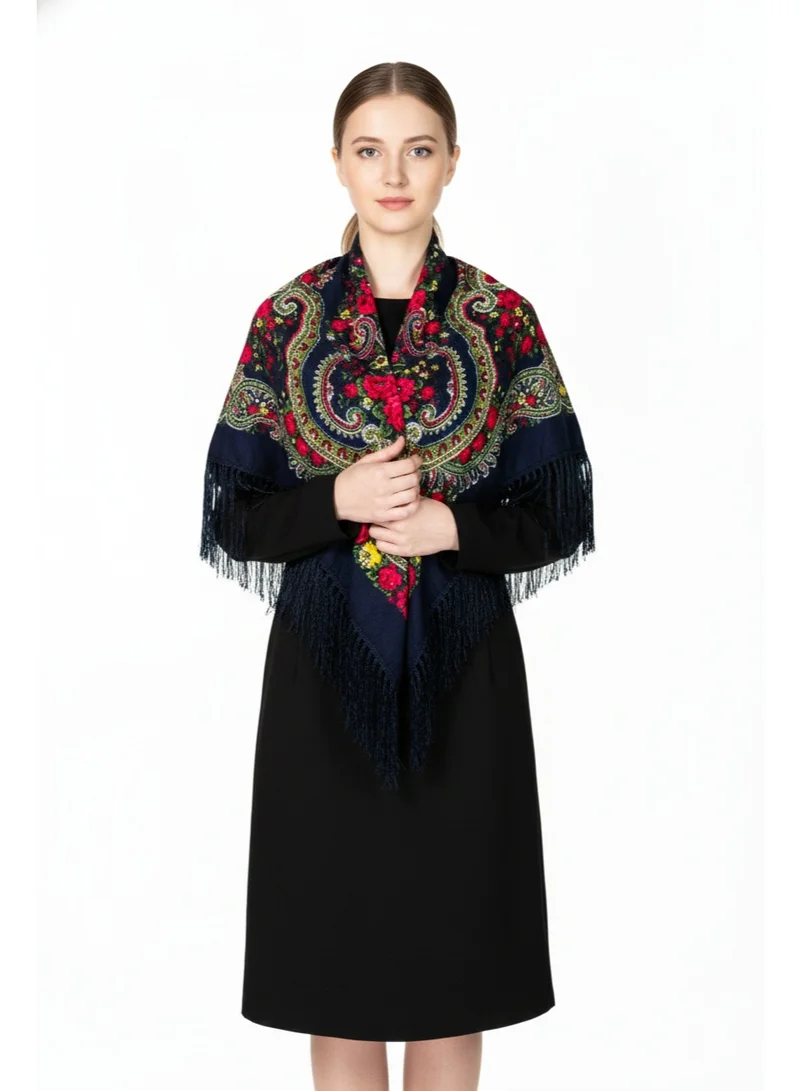 Embrace timeless elegance with this Russian-Ukrainian inspired shawl, featuring vintage patterns and vibrant colors designed to elevate any outfit. This versatile piece transitions seamlessly through the seasons: use it as a chic summer wrap in air-conditioned spaces or a stylish bikini cover-up. In cooler months, it transforms into a cozy infinity scarf or a blanket shawl to keep you warm.